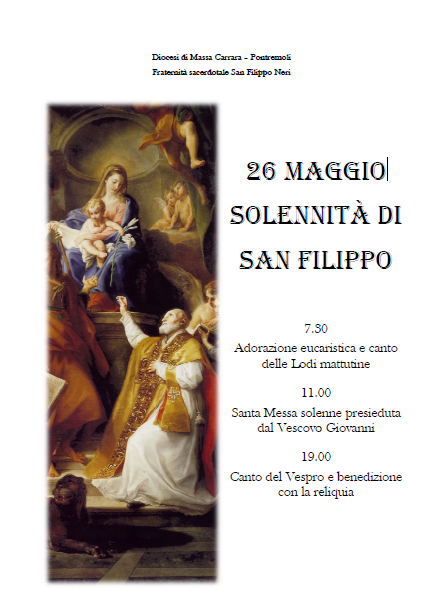 In occasione della Solennità di san Filippo Neri, celeste Patrono della nostra Fraternità sacerdotale, il vescovo Giovanni Santucci celebrerà la santa Messa nella cappella della nostra casa di Filetto, venerdì 26 maggio alle 11. Nel pomeriggio alle 19 i… Read More