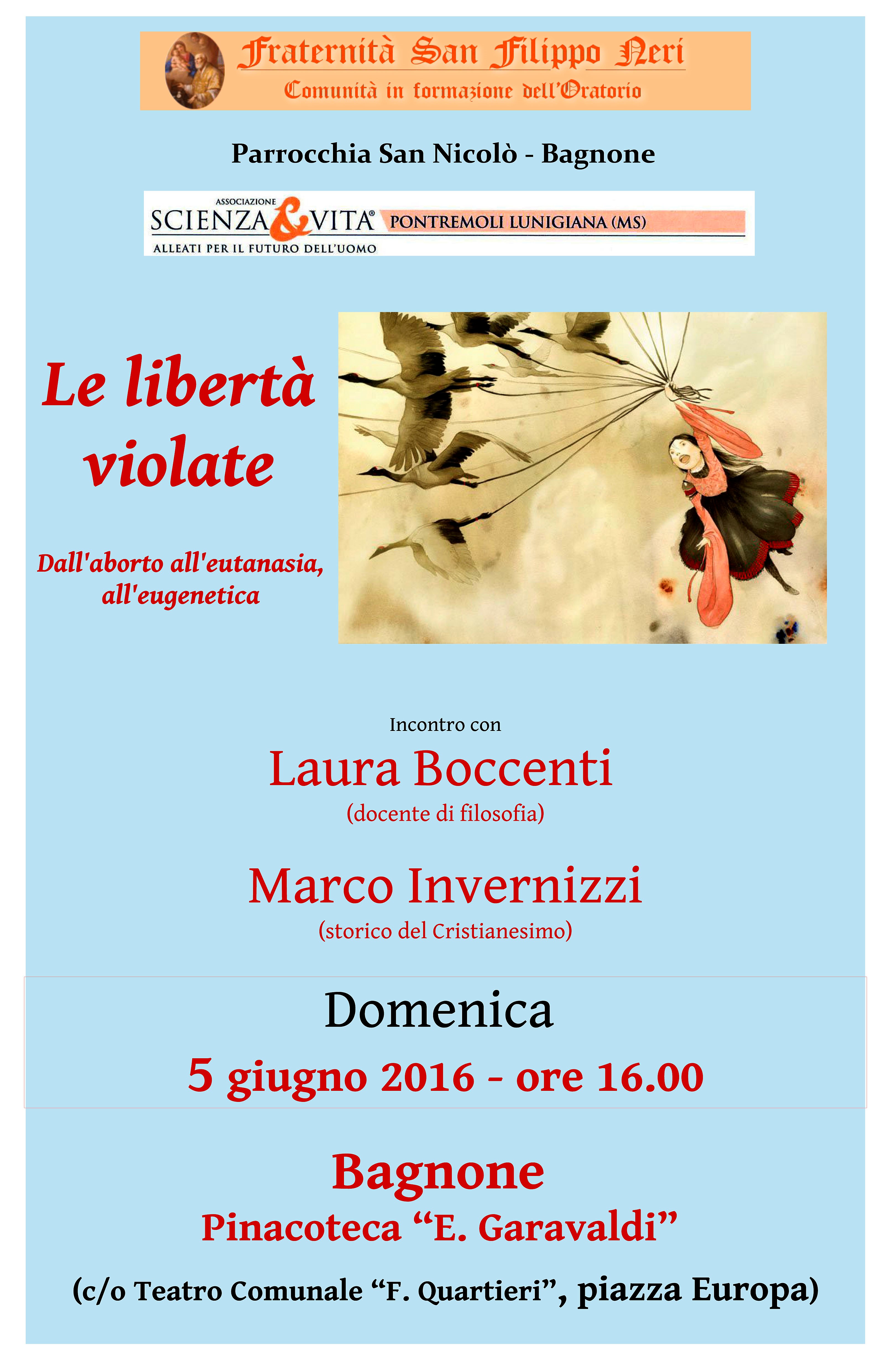 Vi aspettiamo domenica 5 giugno dalle 16, nella pinacoteca del teatro Quartieri di piazza Europa a Bagnone (MS) con la docente di filosofia Laura Boccenti e lo storico del cristianesimo Marco Invernizzi, per affrontare questo tema delicato e di… Read More