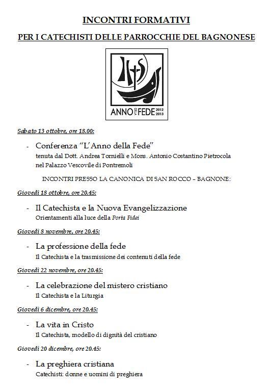 Sabato 13 ottobre 2012, ore 18,30, presso Palazzo Vescovile, Piazza Duomo – Pontremoli Conferenza: L’ANNO DELLA FEDE nel 50°anniversario dell’inizio del Concilio Ecumenico Vaticano II e nel 20° della promulgazione del Catechismo della Chiesa Cattolica Relatori: Dott. Andrea… Read More